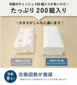 市販のティッシュは150組入りが多い中、